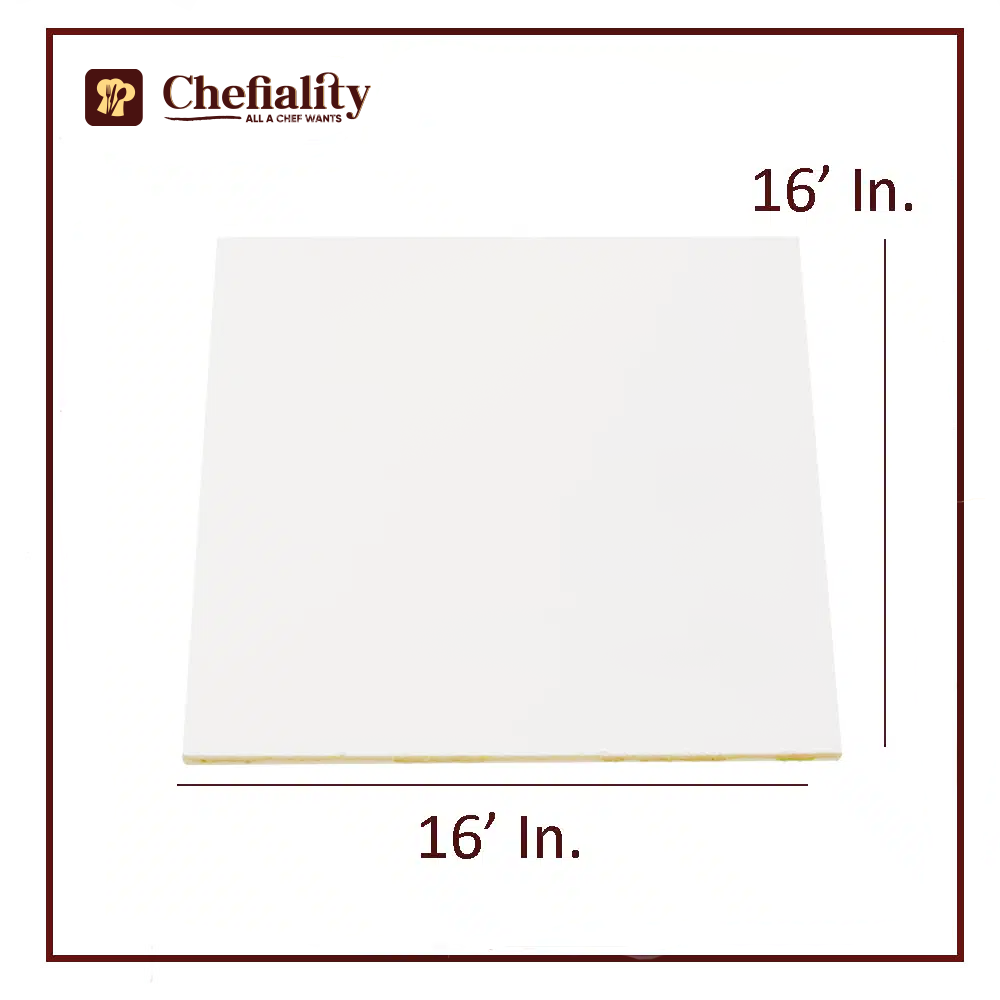 Present your cakes on the sturdy and pristine Chefiality 16×16 White Square Wooden Cake Base. Crafted with high-quality wood and a smooth white finish, this square cake base offers a reliable foundation that enhances the beauty of your creations, making it perfect for both professional bakers and home chefs.