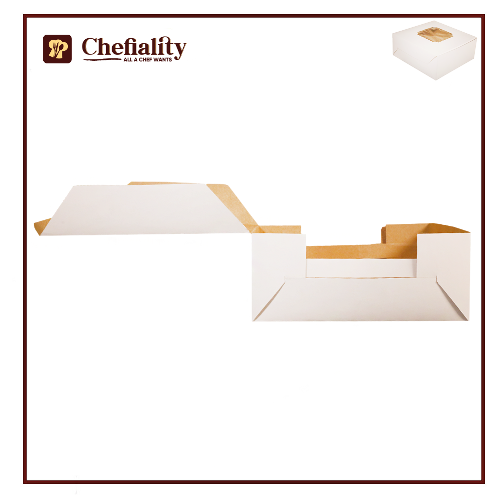 The ideal packaging solution for larger cakes and pastries, this box offers the perfect balance of style and function. The sturdy construction protects your creations during transport, while the window on top allows for an enticing preview of your masterpiece. Whether for a bakery display, gift packaging, or party favors, this box supports your brand’s image with its clean and natural look.