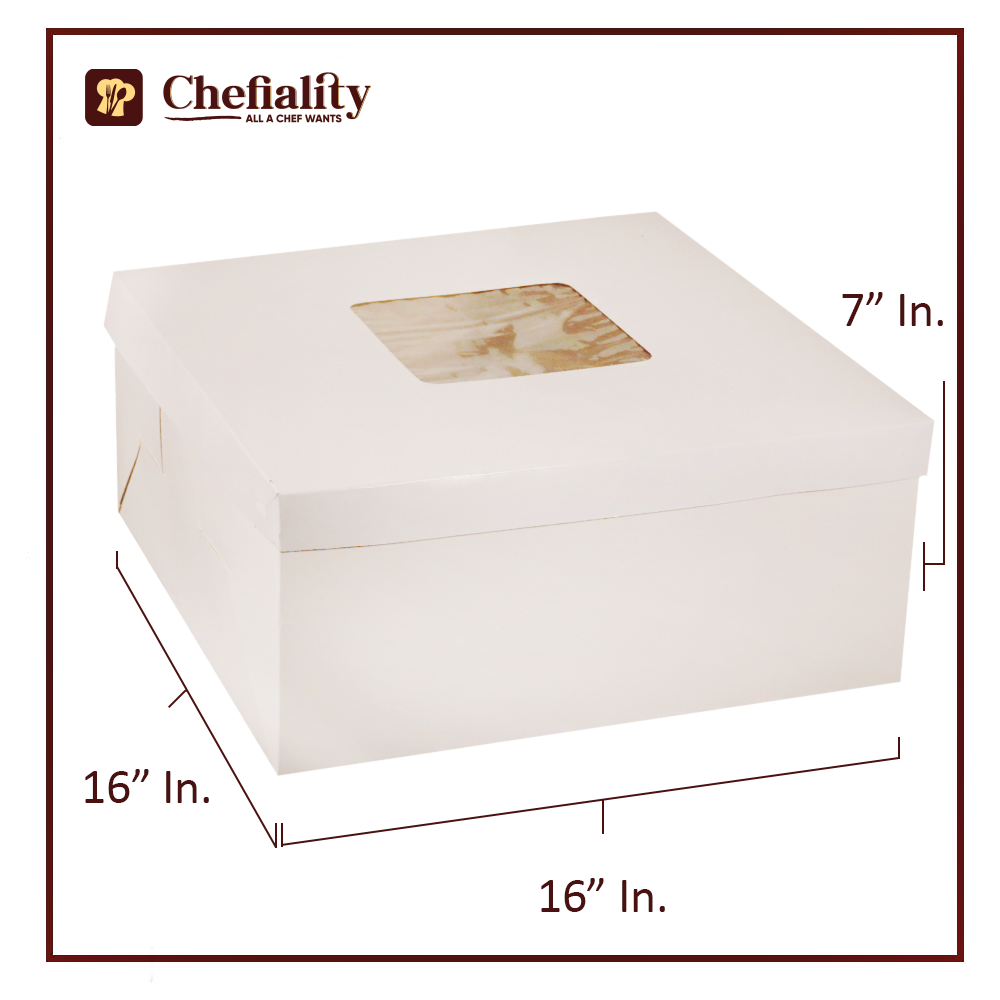 Generous Dimensions: Measures 16” x 16” x 7”, ideal for wide, single-tier cakes or baked goods.