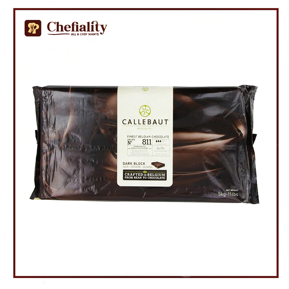 Experience the world-renowned quality of Callebaut® 811 Dark Chocolate, a favorite among professional chefs, chocolatiers, and bakers. This semi-sweet dark chocolate slab is made with 54.5% cocoa content, offering a perfectly balanced flavor profile — rich in cocoa, mildly bitter, and delightfully smooth with fruity notes.