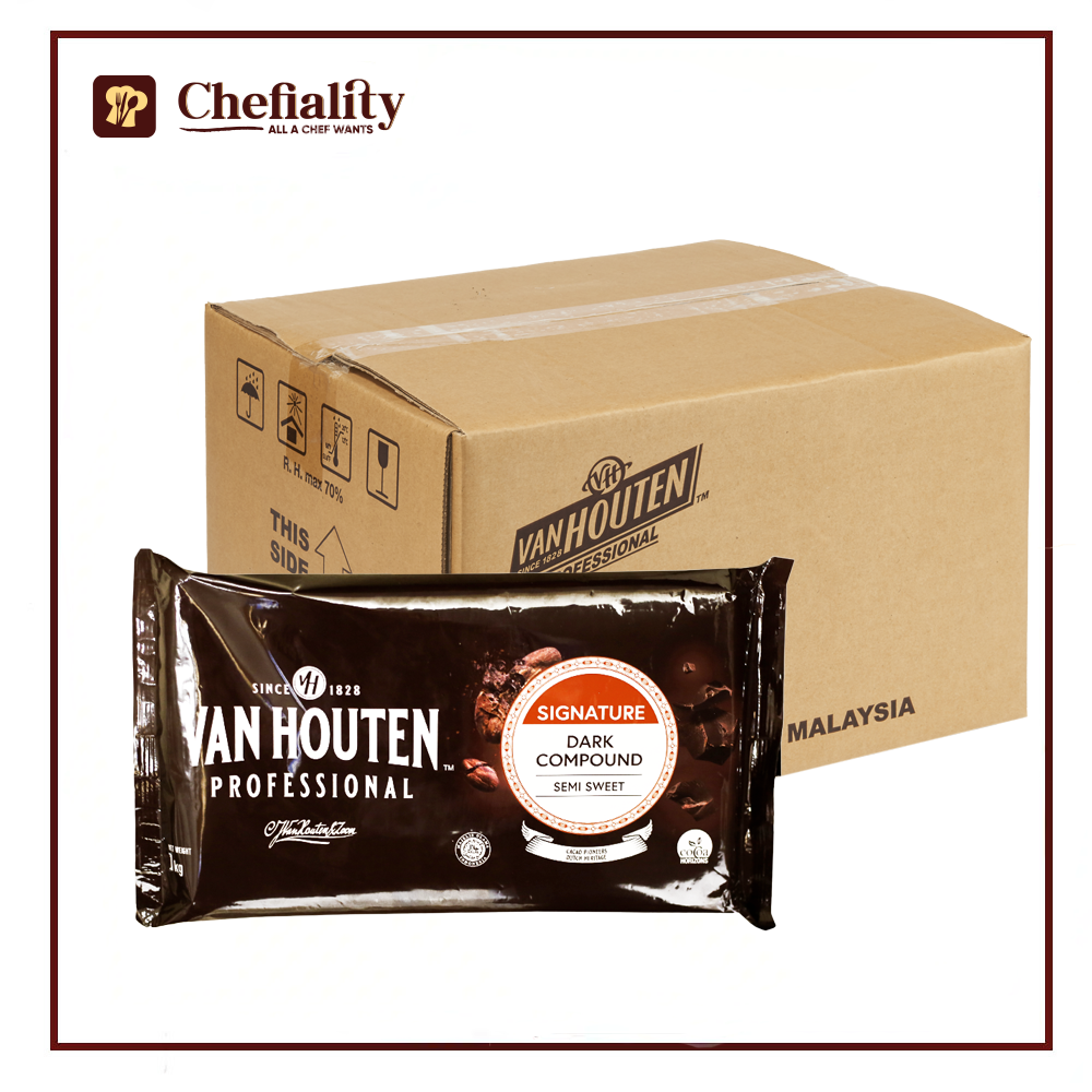 Elevate your baking and confectionery creations with Van Houten Signature Semi Sweet Dark Compound—a trusted choice of professionals worldwide. Perfectly balanced in flavor and texture, this compound chocolate delivers rich cocoa notes and a smooth finish, ideal for dipping, molding, coating, and baking.
